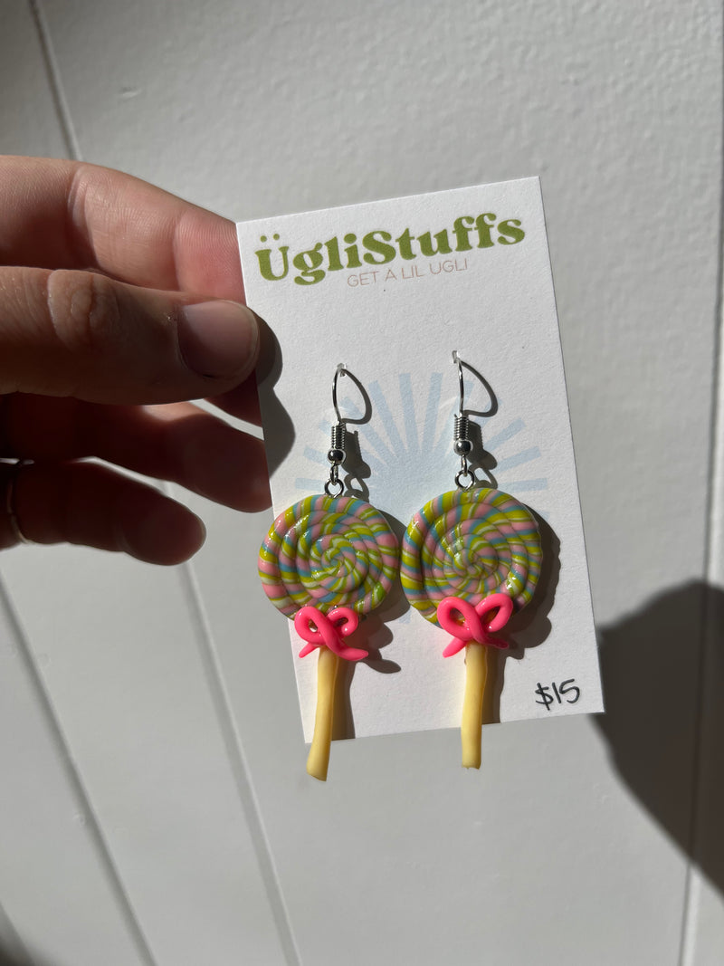 Lucky Lolly Dangles | Handmade Clay Lollipop Earrings